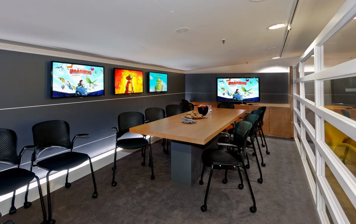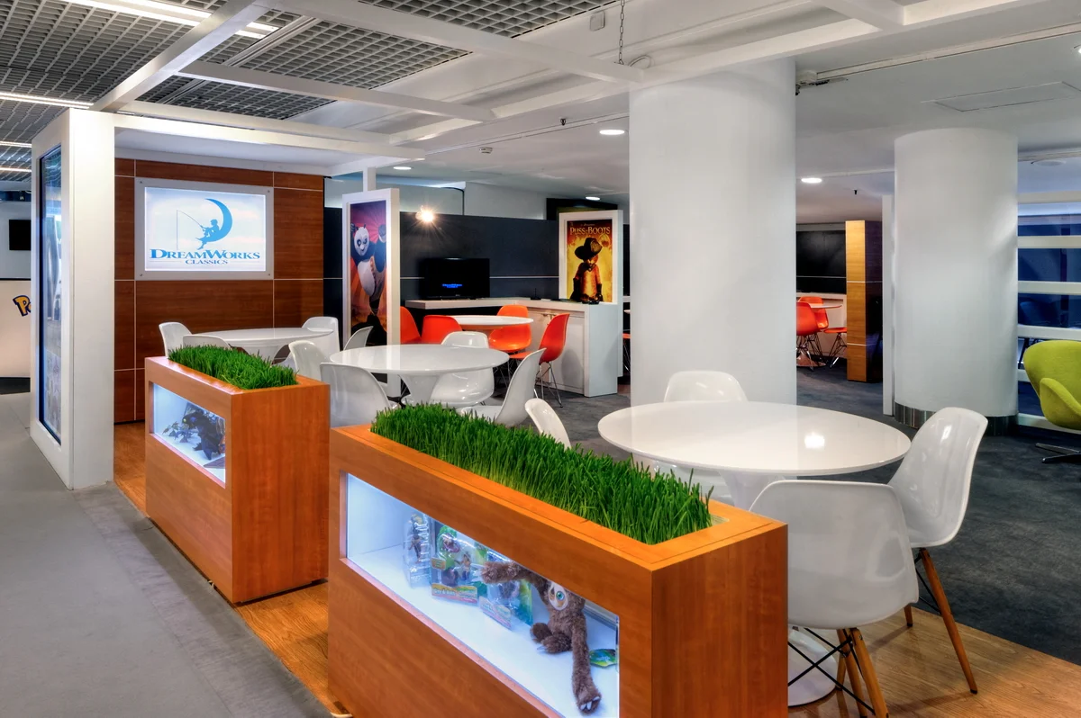 Our DreamWorks booth is featured and used in the Palais de Festivals during both the MIPTV and MIPCOM markets. Our clients had a very precise vision for the booth: streamlined, modern, beautiful colors and organic textures. By combining wood walls with a white linear design, soft undertones, such as grey and white, with subtle pops of orange and green, striking and classic designer furniture, such as the Swan Chair, and Tulip Tables, their vision became a reality. A comfortable and functional space, with a sophisticated beauty, to hold meetings and reign in clients…